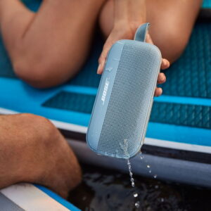 يتمتع SoundLink Flex بالمتانة والمرونة بفضل تصنيف IP67 الخاص والمواد المتميزة المستخدمة، حيث يحتوي على لوحة خلفية من مطاط السيليكون الناعم وشبكة فولاذية مغطاة بمادة جافة لحماية الأجزاء الداخلية من السقوط والصدمات، كما أنها تقاوم التآكل وتمنع أي تغير في اللون من ضوء الأشعة فوق البنفسجية. وتعمل مقوماته الصوتية المحكمة الإغلاق على مقاومة الماء والغبار والأوساخ بحيث لا يتأثر الأداء الصوتي، مما يجعله رفيقًا جيدًا لحمام السباحة والشاطئ، ويمكن ربطه بسهولة بحلقة في حقيبتك، أو تعليقه على كرسي الشاطئ بالقرب منك.