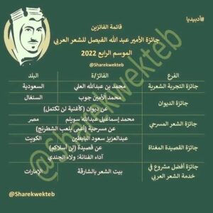 وأضاف: هنا في الشارقة يتشكل التاريخ الشعري وفق رؤى سمو حاكم الشارقة الذي بدعمه النوعي للشعر العربي استطعنا تحقيق الإنجازات خدمة للشعر العربي وأشار إلى أن الفوز بالجائزة يؤكد المسيرة الحضارية لإمارة الشارقة في دعوة الشعراء والتفاعل مع اتجاهاتهم الشعرية ومن ثم تقديمهم بصورة مشرفة وفتح منافذ لنشر أعمالهم الشعرية وهو ما يبرز حجم هذا الدور الذي نقوم به أيضاً في بيت الشعر، وقد توج كل هذا بالفوز بجائزة مرموقة عربية عالمية في المملكة العربية السعودية وتحمل اسم علمٍ من أعلام الشعر السعودي والعربي وهو الأمير الراحل عبدالله الفيصل، فهي جائزة أدبية منشؤها سعودي ووجهتها عربية عالمية انطلقت عام ١٤٤٠هـ – ٢٠١٨مـ