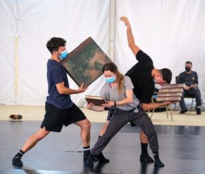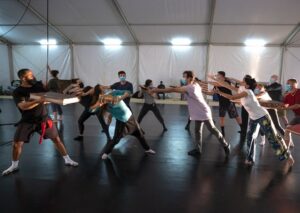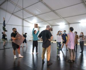 وتكشف كواليس التدريبات التي تقام على مدار شهر كامل، جانباً من اللوحات الفنيّة التي سيشهدها العرض، حيث يجتمع الفنانون في عروضٍ تعبيرية جماعية، وأخرى فردية، يحلّق فيها العارضون في الهواء، ويرسمون بأجسادهم لوحات بصرية جمالية، قائمة على التوازن والانسجام والحركة، فيتبدل فضاء المسرح من زمان إلى آخر برقصات وأداء الفنانين.