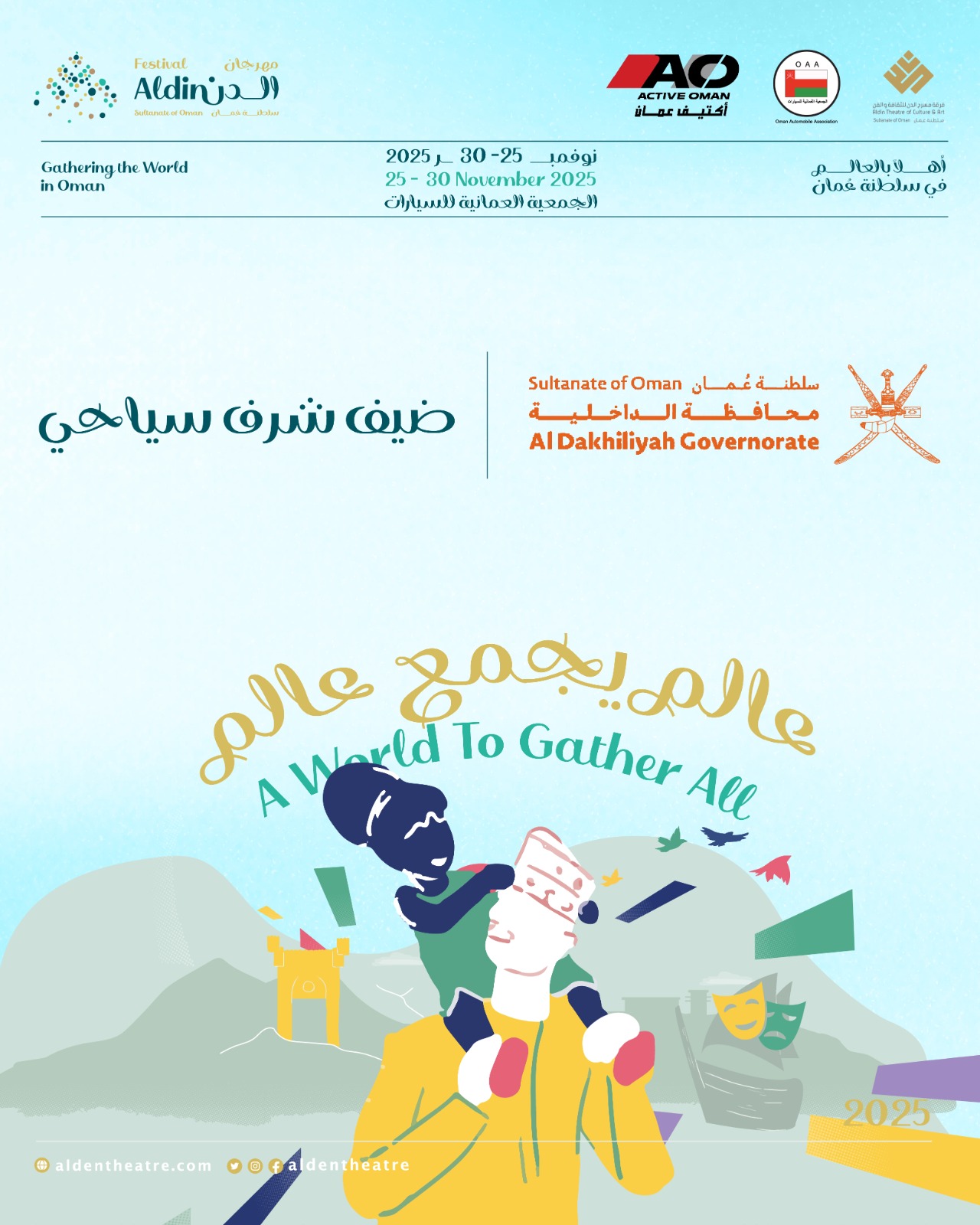 أعلنت فرقة مسرح الدن للثقافة والفن عن موعد انطلاق الدورة الخامسة من مهرجان الدن الدولي – أهلاً بالعالم في سلطنة عُمان، الذي سيُقام مع الشريك التنظيمي الجمعية العُمانية للسيارات – أكتيف عُمان في مسقط خلال الفترة من 25 إلى 30 نوفمبر 2025م، بمشاركة (18) عرضًا مسرحيًا من سلطنة عُمان والعالم العربي والعالم، ليواصل المهرجان مسيرته بوصفه جسرًا يجمع بين الإبداع الإنساني والهوية العُمانية في أبهى صورها.