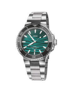 تحتفي ساعة Aquis Date بقياس 43.5 مم بخنزير نهر اليانغتسي عديم الزعنفة، أحد الأنواع المهددة بالانقراض. يأتي الميناء من عرق اللؤلؤ بدرجات الأزرق والأخضر مع نقشة تموجات مستوحاة من موطنه الطبيعي. صُنعت الساعة من الفولاذ المقاوم للصدأ وتعمل بحركة أوريس الأوتوماتيكية. Calibre 733، في تصميم يجمع بين الجمال والدعم المستمر لجهود الحفاظ على هذا النوع النادر