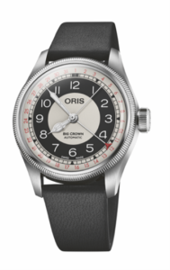 تتميّز ساعة Big Crown Pointer Date بقياس 38 مم بميناء رمادي وأسود متراكزين مع لمسات حمراء جريئة تضفي طاقة متجددة على التصميم الكلاسيكي لأوريس. تأتي العلبة من الفولاذ المقاوم للصدأ مع إطار محزّز وتاج كبير الحجم، ويكتمل التصميم بسوار جلدي أسود من جلد الغزال المستخرج بشكل مسؤول، ليمنح الساعة حضوراً واثقاً وأنيقاً.