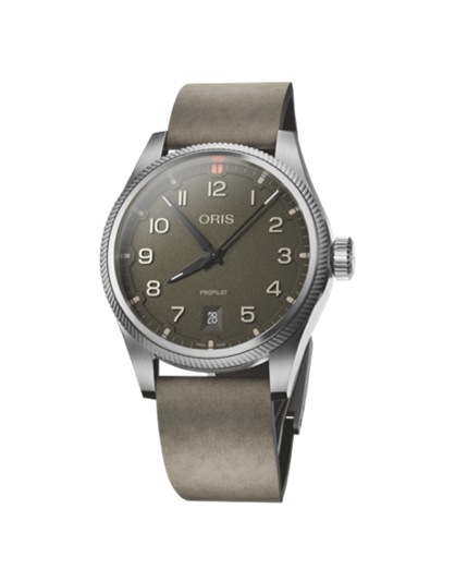 تأتي ساعة ProPilot Date بقياس 41 مم مع ميناء أخضر مزخرف مستوحى من المواد الطبيعية، داخل علبة من الفولاذ المقاوم للصدأ أعيد تصميمها بخطوط أكثر حدة وحضوراً بصرياً أقوى. ويكتمل التصميم بسوار من الجلد السويدي الأخضر، لتجمع الساعة بين الأناقة المعاصرة والبساطة الراقية.