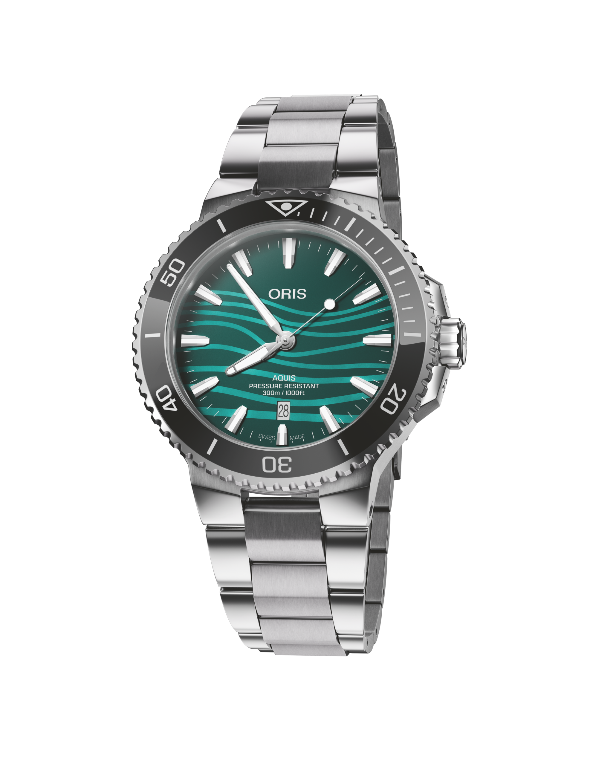 تحتفي ساعة Aquis Date بقياس 43.5 مم بخنزير نهر اليانغتسي عديم الزعنفة، أحد الأنواع المهددة بالانقراض. يأتي الميناء من عرق اللؤلؤ بدرجات الأزرق والأخضر مع نقشة تموجات مستوحاة من موطنه الطبيعي. صُنعت الساعة من الفولاذ المقاوم للصدأ وتعمل بحركة أوريس الأوتوماتيكية. Calibre 733، في تصميم يجمع بين الجمال والدعم المستمر لجهود الحفاظ على هذا النوع النادر