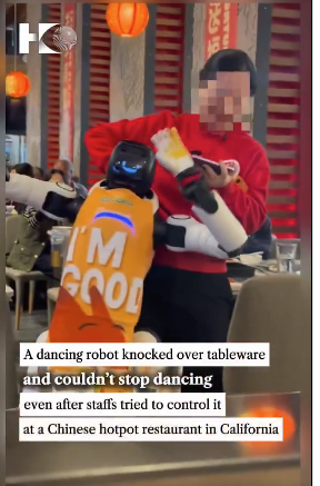 شهد مطعم “هايديلاو” الصيني في كاليفورنيا عطلًا في روبوت جعله يرقص بشكل لا يمكن السيطرة عليه، ما أجبر الموظفين على التدخل، وانتشر مقطع الفيديو على نطاق واسع.