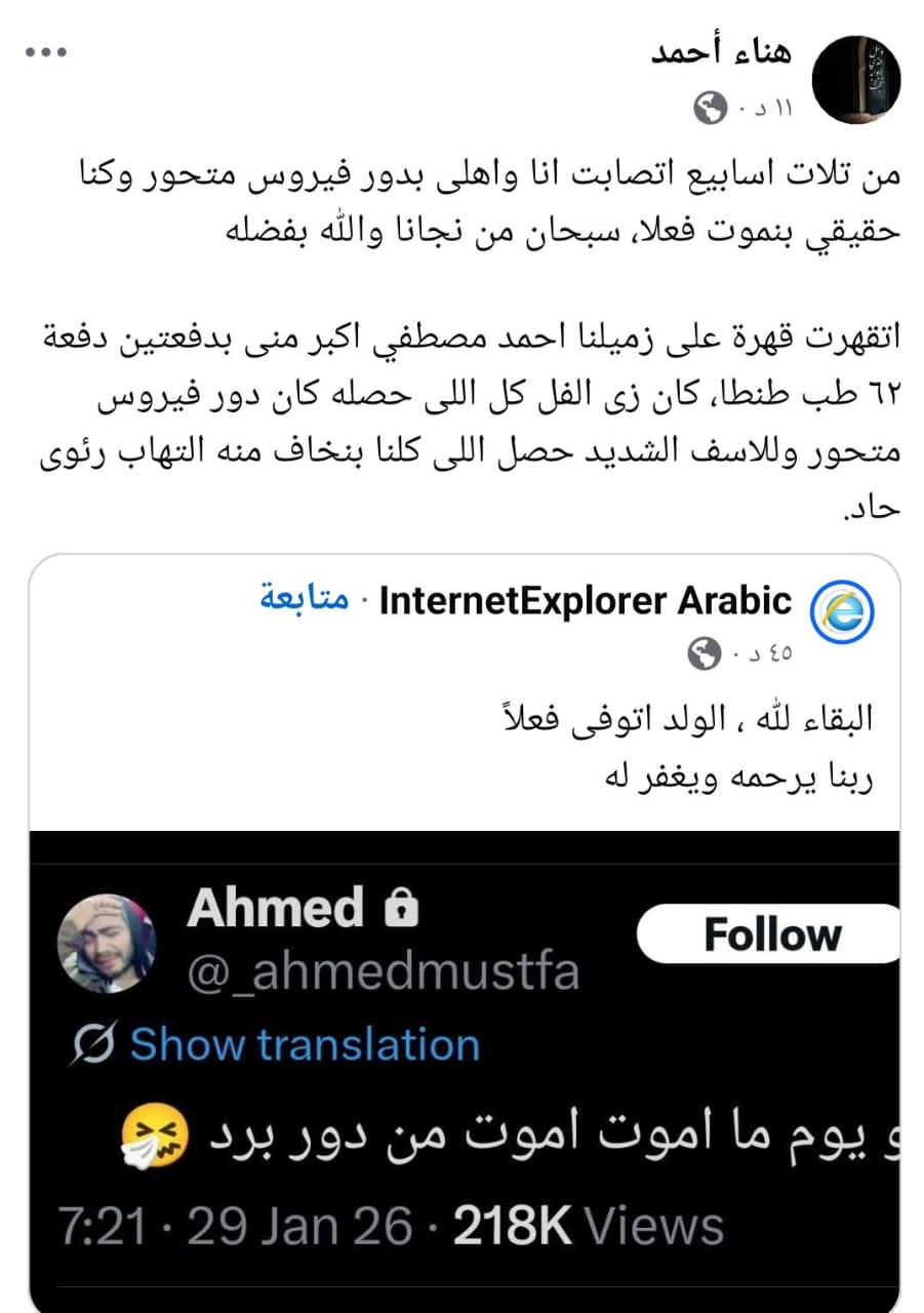 رواد مواقع التواصل ينعون الشاب أحمد مصطفى