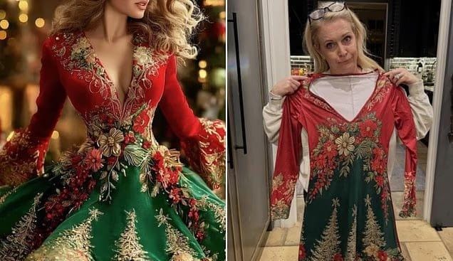الفستان الذي بدا في الإعلان أنيقًا وفاخرًا، مزينًا بتطريز لأشجار عيد الميلاد الذهبية وزهور ثلاثية الأبعاد، وصل إليها مطبوعًا ببساطة على قماش رخيص، بعيد عن أي تفاصيل مزخرفة أو أكمام متسعة أو تنورة متعرجة كما وُعدت في الإعلان.