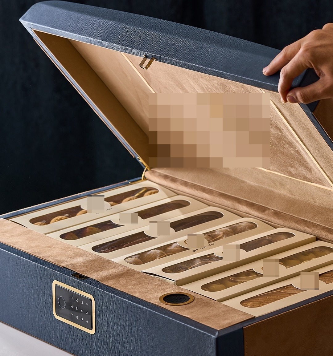 العلبة المتطورة مزودة بمنفذ شاحن تايب C، وسماعة داخلية تبث رسالة ترحيبية عند فتحها، مع شريط إضاءة داخلية، كما يُمكن تغيير الرسالة الترحيبية عبر تطبيق الموبايل، فضلًا عن نظام الفتح بالبصمة وكلمة المرور.