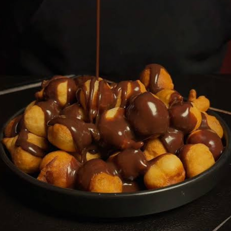 يُخلط الدقيق مع الخميرة والسكر والملح، ثم يُضاف الماء تدريجيًا حتى تتكون عجينة لينة، تترك العجينة لتتخمر لمدة 30 دقيقة، ثم تُقلى على شكل كرات صغيرة في زيت ساخن حتى تكتسب اللون الذهبي. بعد ذلك تُغمس في الشوكولاتة المذابة وتُقدم ساخنة.