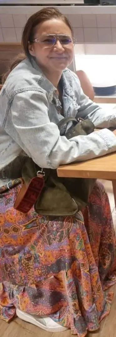 أتى ذلك بعد أن أطلّت نيللي بفستان طويل ملون وحذاء رياضي، دون أية مساحيق تجميل، واضعة نظارة طبية شفافة، مما ظهر ملامح وجهها.