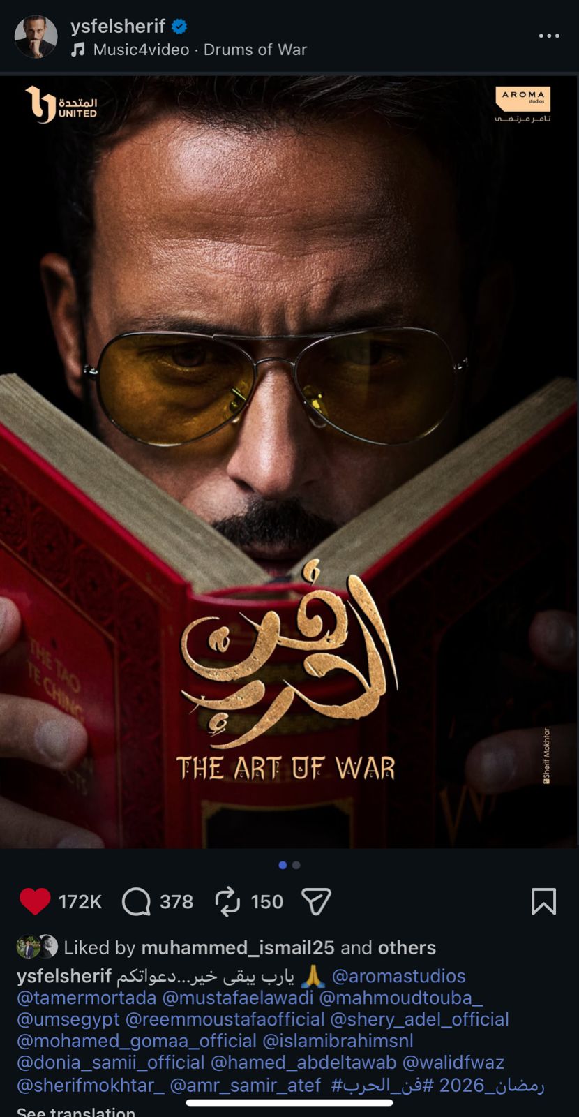أعلن الفنان يوسف الشريف، بعد غياب دام لأكثر من 5 سنوات عن الدراما التليفزيونية، طرح مسلسله الجديد “فن الحرب”.