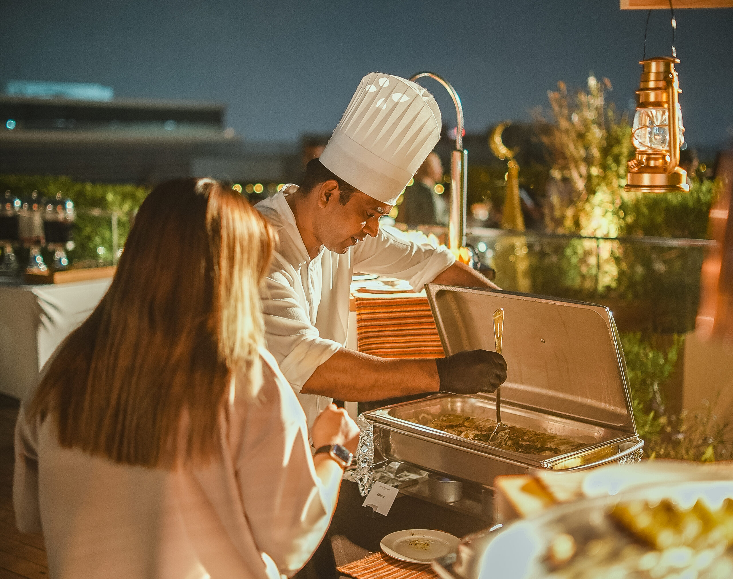 As the sun sets, ARIA Rooftop & Lounge transforms into an intimate sanctuary in the sky. Soft lantern light, panoramic city views and the gentle resonance of a live Oud performance create an atmosphere that feels both elevated and grounded in tradition. The rooftop setting allows the pace of the evening to unfold naturally, offering guests a sense of escape while remaining firmly connected to the rhythm of the city below.